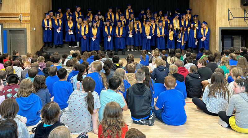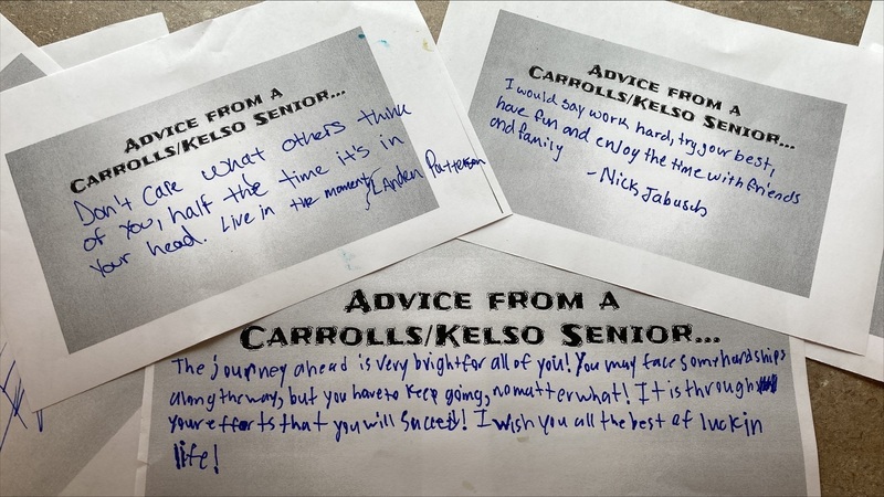 Kelso seniors wore their cap and gowns and paraded through the halls of their elementary and middle schools today; passing along advice, wisdom, and heaps of inspiration and excitement.